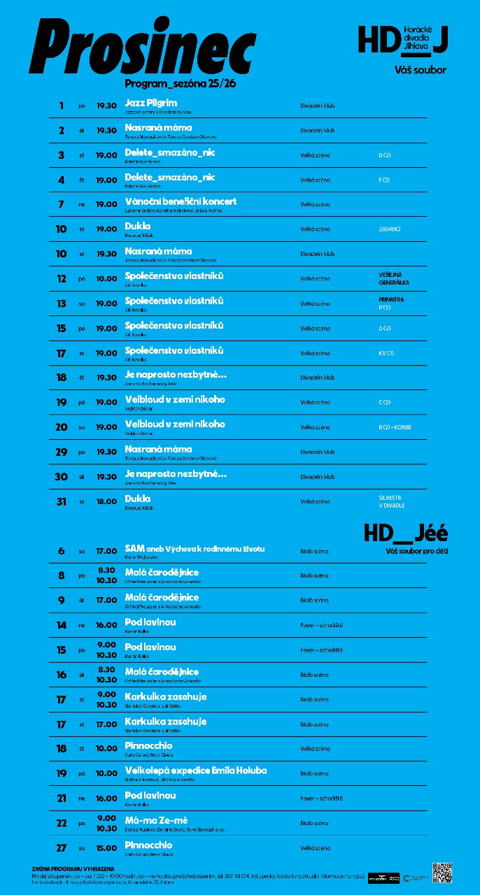 HORÁCKÉ DIVADLO JIHLAVA- program na prosinec 2025